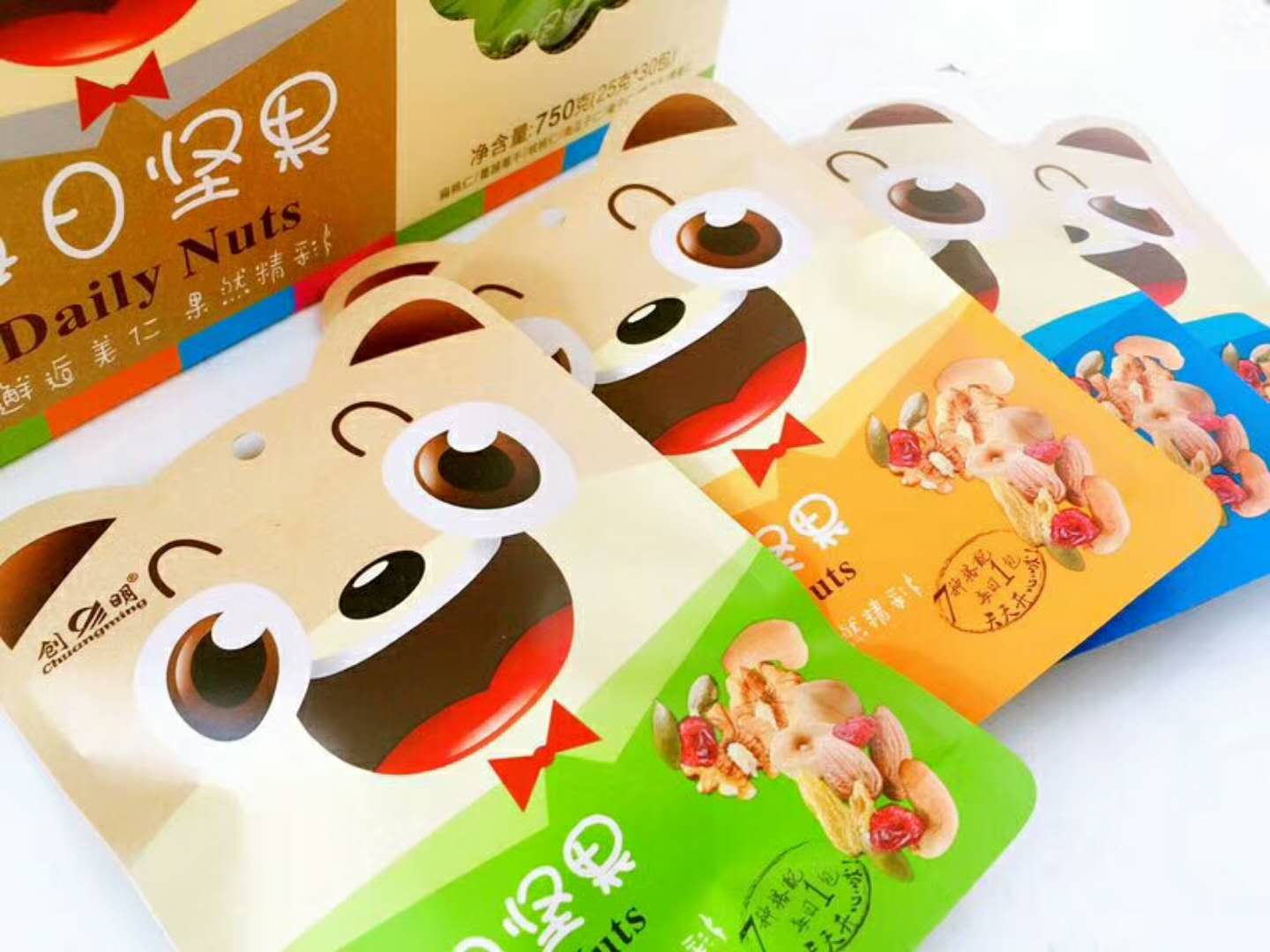 混合了扁桃仁、蔓越莓干、核桃仁、南瓜子仁、 榛子仁、提子干、腰果仁等多種果仁,滿足了不同的營養(yǎng)需求。一盒30小袋,每袋25克。
